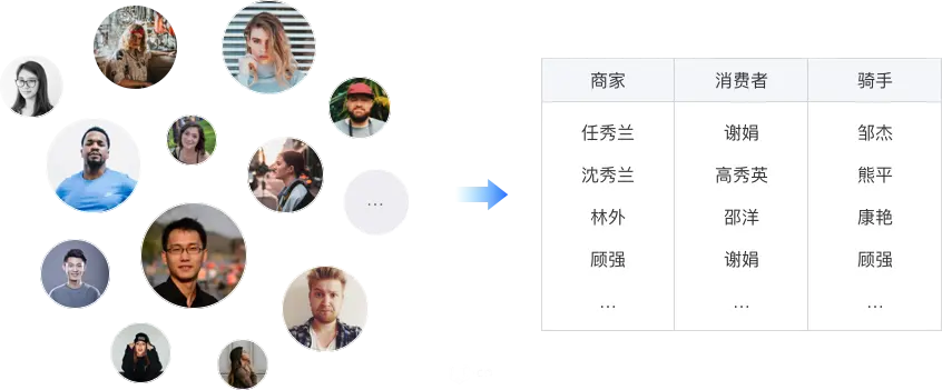 1.先确定好产品属性,按照用户角色进行分类,比如外卖APP有:商家、消费者、骑手 三种角色,图例:
