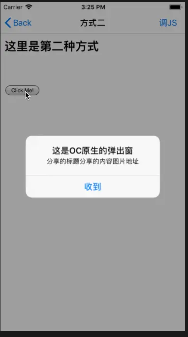 window.webkit.messageHandlers.Share.postMessage({title:'测试分享的标题',content:'测试分享的内容',url:'http://www.baidu.com'});
