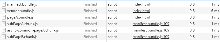 会发现多了一个异步加载包subPageA.chunk.js和subPageB.chunk.js的公共模块async-common-pageA.chunk.js包,配置成功!