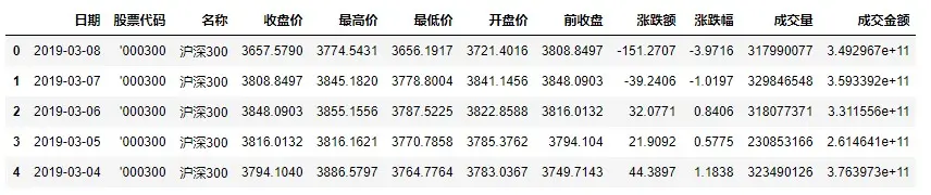 data = pd.read_csv('../data/000300.csv',encoding='GB2312')