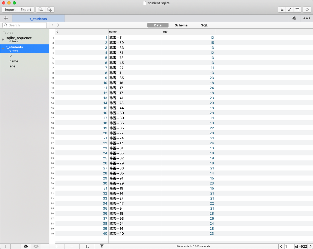 查看数据库里 t_students表中的数据