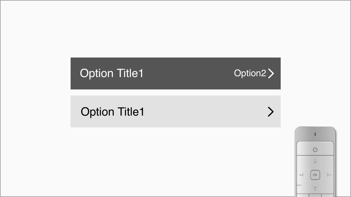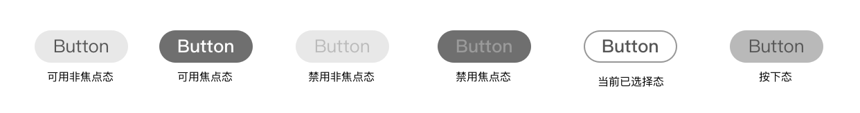 焦点在界面上主要有六种状态,分别是可用焦点、可用非焦点、禁用焦点、禁用非焦点、当前已选状态,如下图所示。其中“按下态”在TV中较少出现,常用的是一种表现方式就是按下【OK】键后,有圆点向周围扩散的波纹。