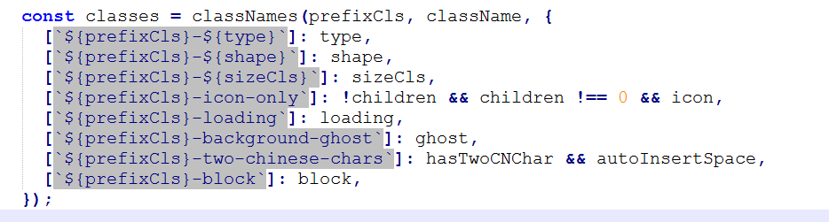 ns-dialog__title--center - 在使用多个class时候需要拼字符串,特别是如果存在条件判断的样式,还需要进行if判断 下图是蚂蚁金服 ant design 框架的一段样式处理,虽然进行了包装处理,但是还是稍显麻烦