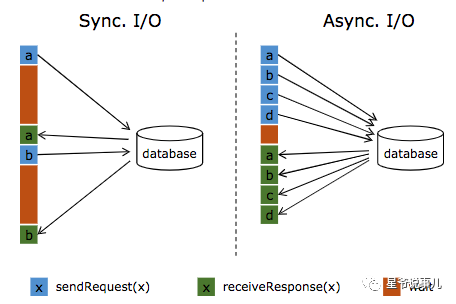 Flink 提供了外部数据存储的异步I/O API。流计算中经常需要与外部存储系统交互,比如取某个表的数据以便跟流中数据进行关联,一般来说,如果用同步I/O的方式,会造成系统中出现大的等待时间,影响吞吐和延迟。为了解决这个问题,异步I/O可以并发处理多个请求,提高吞吐,减少延迟,如下图所示。