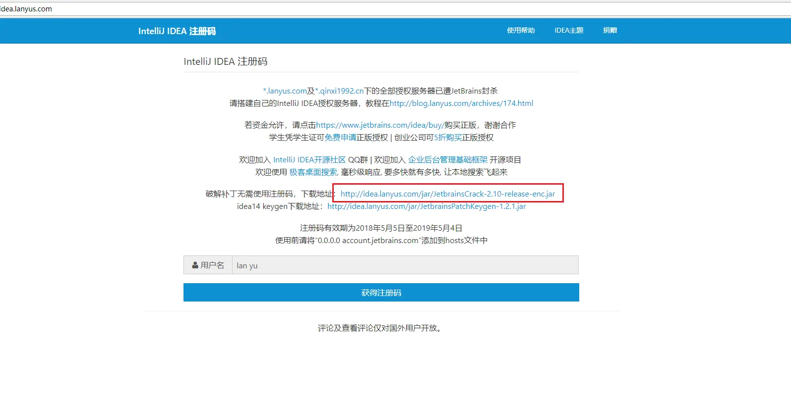 下载地址是idea.lanyus.com/,进去之后点击这个网址 。