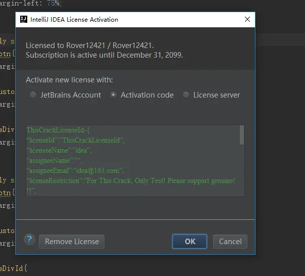 (不知道Activation code怎么打开??打开方式:idea上方菜单栏点击help>Register)