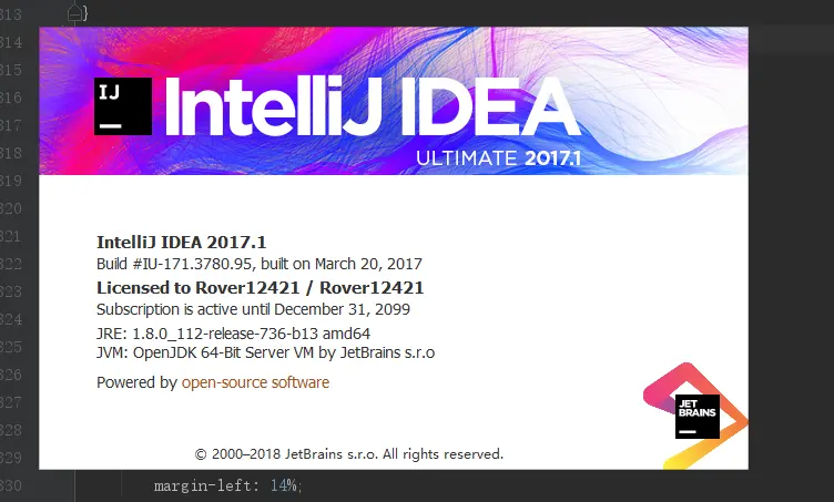 7.idea上方菜单栏点击help>About,可看到有效期到2099-12-31