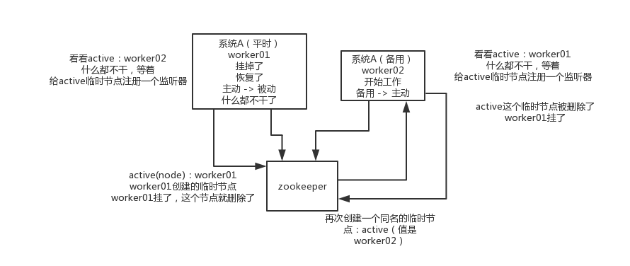 比如hadoop、hdfs、yarn等很多大数据系统,都选择基于zk来开发HA高可用机制,就是一个重要进程一般会做主备两个,主进程挂了立马通过zk感知到切换到备用进程