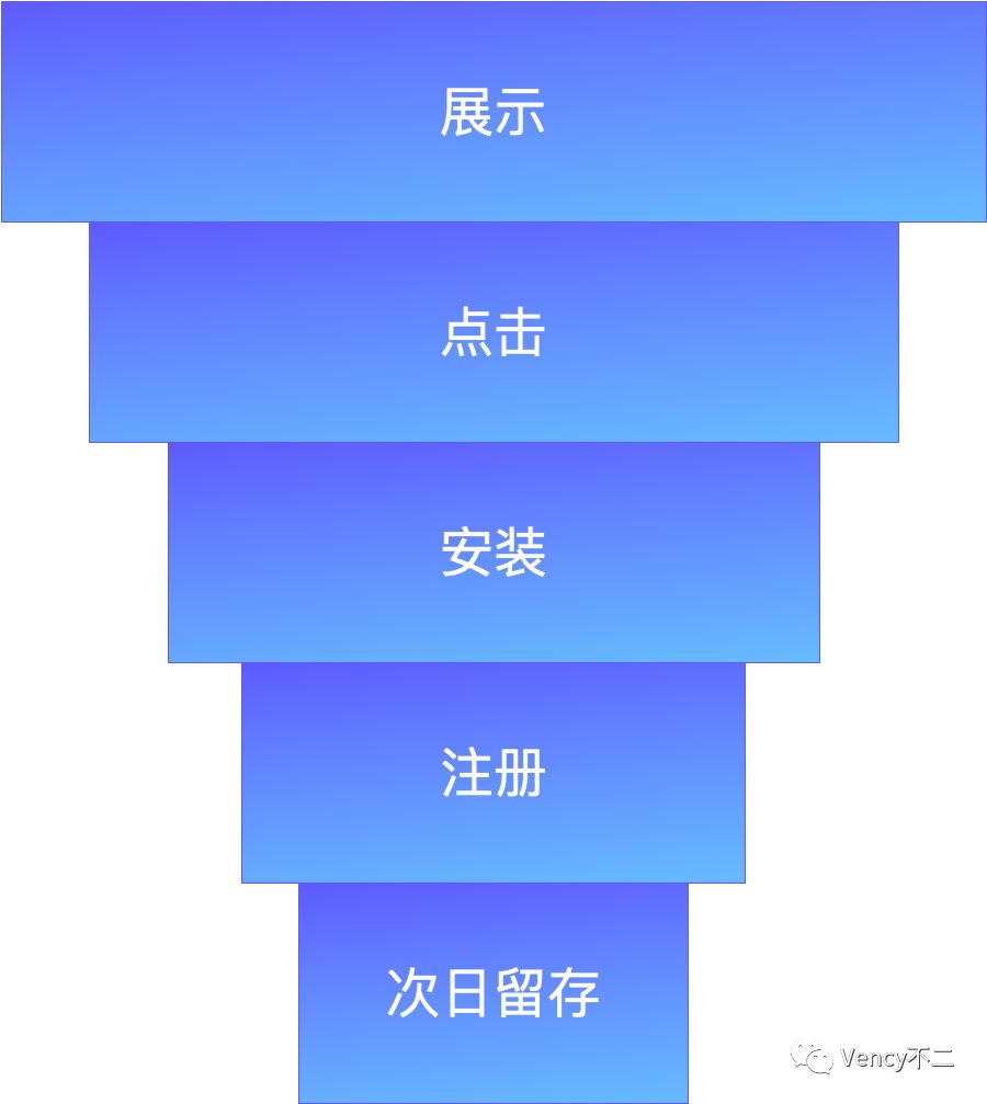 以某应用广告投放为例,此应用的投放漏斗为展示→点击→安装→注册→次日留存,若发现次日留存异常低,则逐层往上看触点,漏斗中的触点就是每层的数据指标。若注册也异常低,则代表问题出在注册或以上层级;若注册正常,则代表问题出在从注册到次日留存的过程。