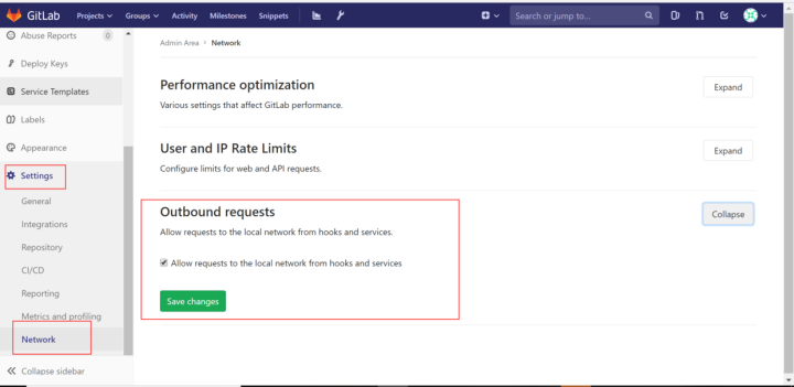 - gitlab里面,outbound requests 允许