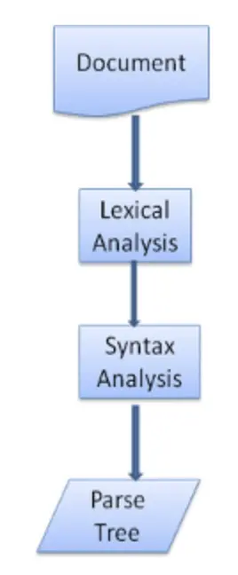 - 原文档=>词法分析=>语法分析=>解析树