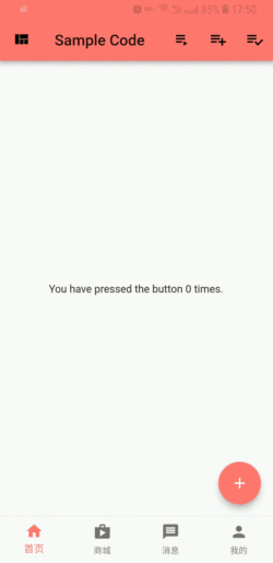 BottomNavigationBarType有两值,就是fixed,还有一个就是shifting,默认是shifting。这样设置之后仍然存在一个问题:就是选中的按钮的字体仍然会比未选中的大一点,有兴趣的可以自己去验证一下。