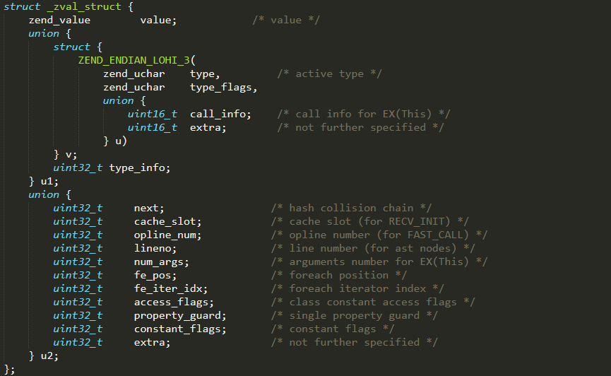 zend_value是一个联合体,其代码如下: