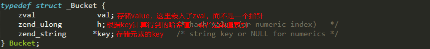 Bucket结构用力保存元素的key及value。而h是hash code:如果key是数值(及数值索引)那么它的值就是数值索引的值;如果key是字符串,那么它的值就是根据字符串key通过Time33算法计算得到的散列值。h值用来映射元素的存储位置。