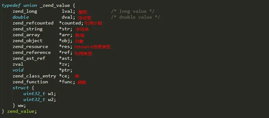 zend_value是一个联合体,其代码如下: