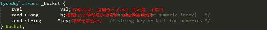Bucket结构用力保存元素的key及value。而h是hash code:如果key是数值(及数值索引)那么它的值就是数值索引的值;如果key是字符串,那么它的值就是根据字符串key通过Time33算法计算得到的散列值。h值用来映射元素的存储位置。