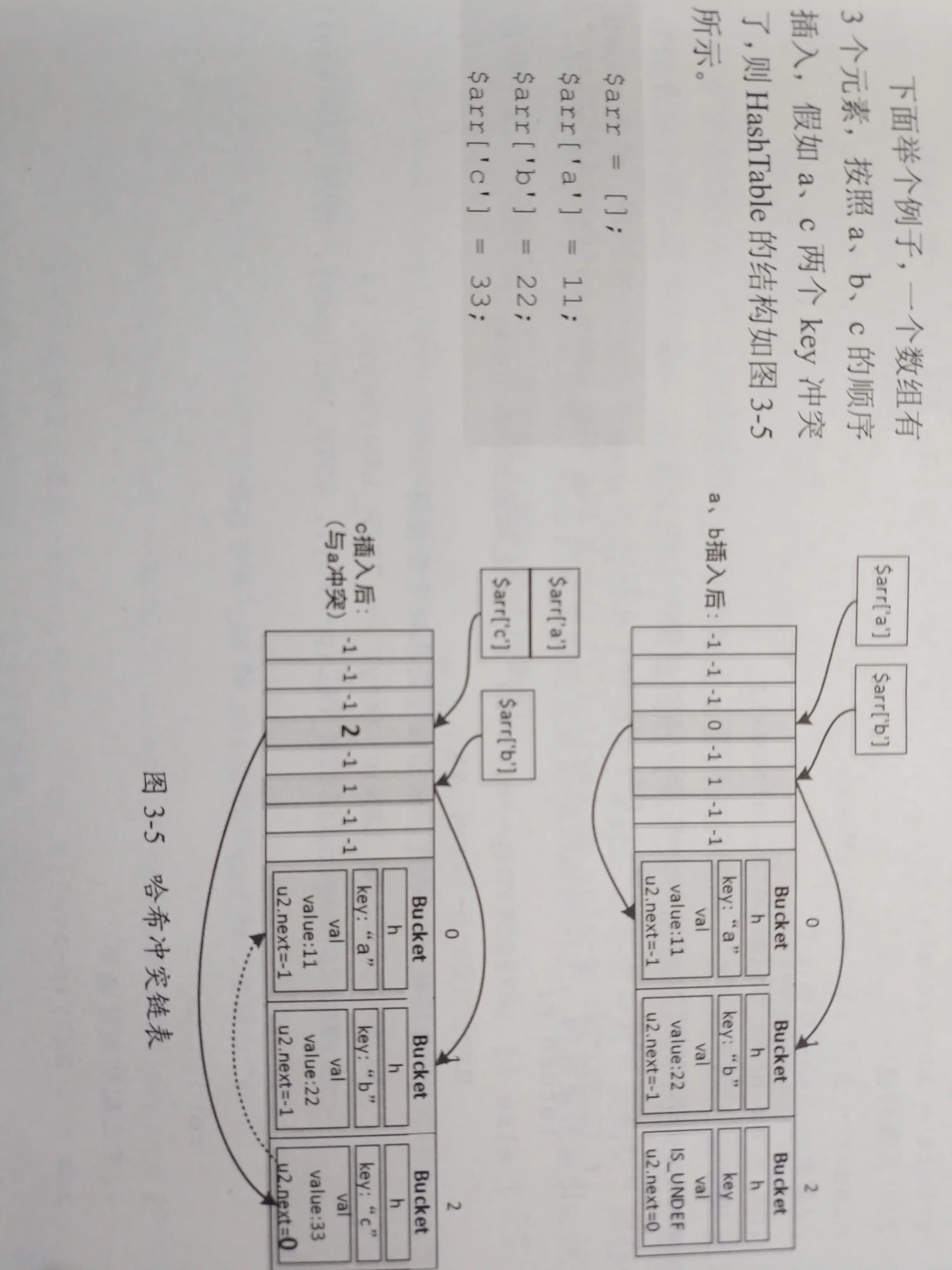 HashTable会记录与它冲突的元素在arData数组中的存储位置。