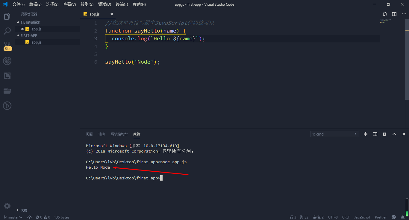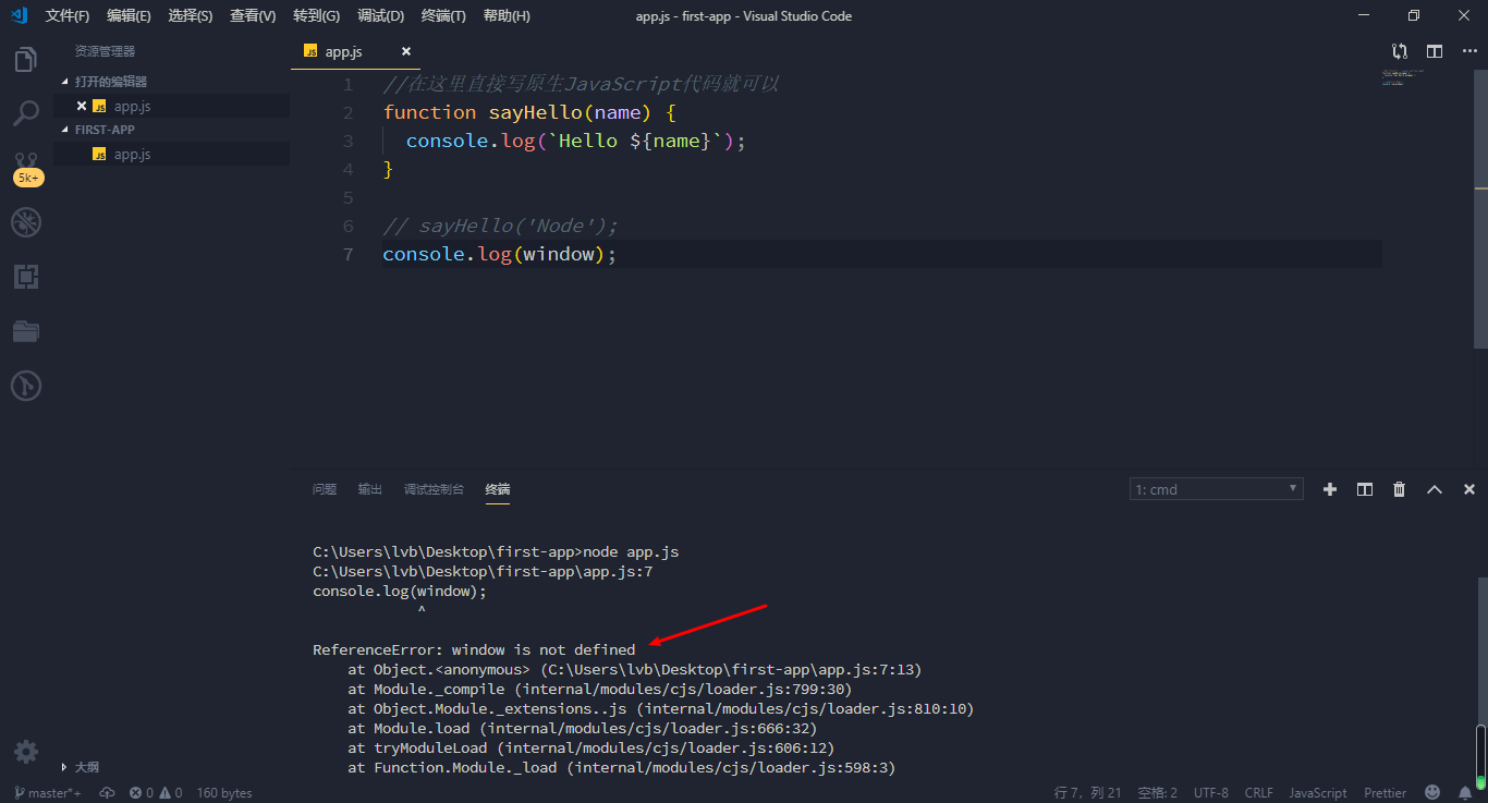 VScode编辑器新建文件夹first-app,在文件夹下新建一个文件app.js。