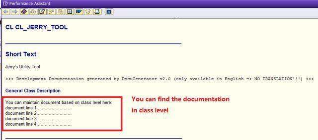 3. 所有方法的文档书写完毕之后,使用事务码CLASS_DOCUGEN生成文档。