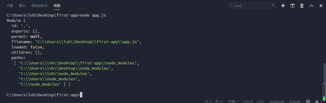 每个node工程至少要包含一个文件或者说一个模块,这里的app.js就是这个项目的主模块。