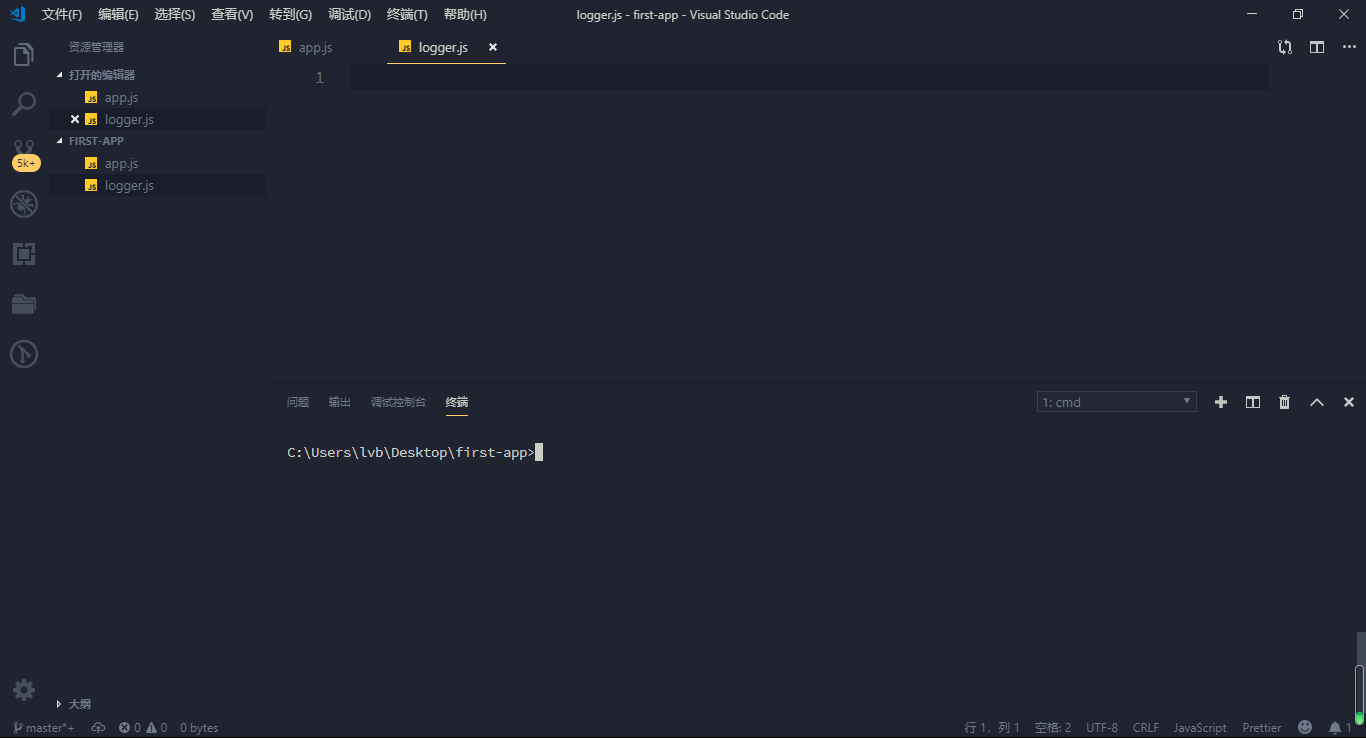 首先我们创建一个logger.js的新文件,假设我们为记录信息创建一个模块,在很多的地方会复用到这个模块。有可能也会在其它应用里用到这个模块。