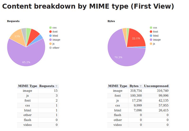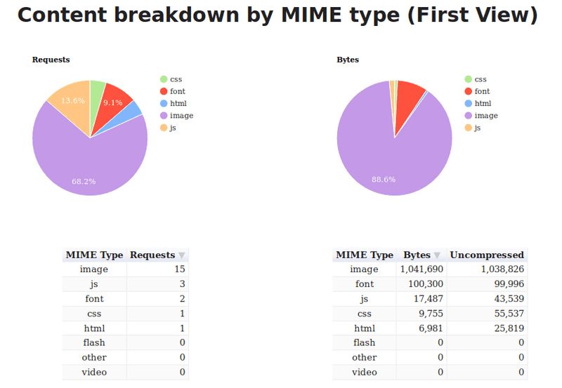 在我的网站上,我发现主页的大小超过了 1.1MB,其中图像占了 88%。我也意识到我提供的图片比实际需要的要大(比如分辨率)。显然,还有很大的优化空间。