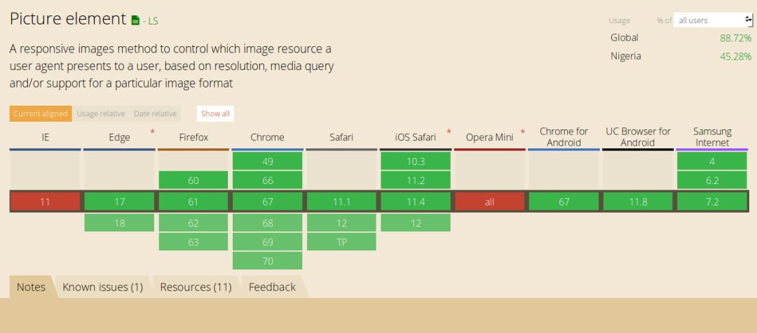 不支持<picture>的浏览器将跳过所有 source,并加载底部 img 标签的 src 属性所定义的内容。可以说,我们已经对我们的页面进行了渐进式增强,可以支持各种浏览器。