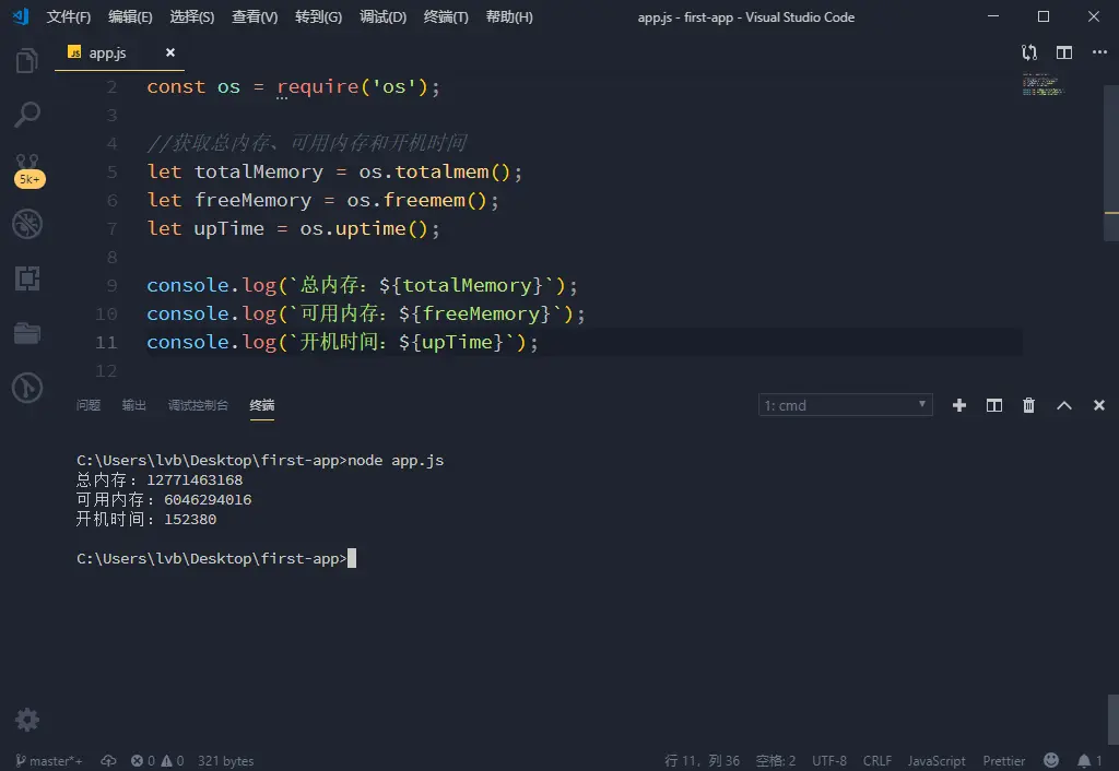 freemem,会返回当前可用的内存有多少。totalmem返回总内存的大小。uptime获取开机时间等等。