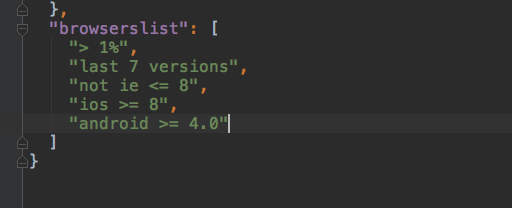 在这里我们可以看到关于autoprefixer的配置是在package.json下的browserslist选项