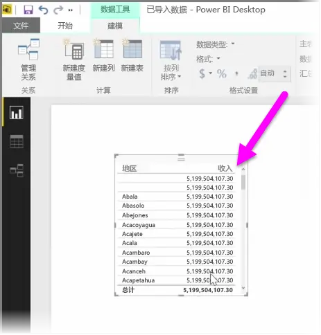 现在,我们返回报表视图,你现在将看到各区的值都不同(如下图)。当然,还有可以通过创建计算列执行的各种其他操作。