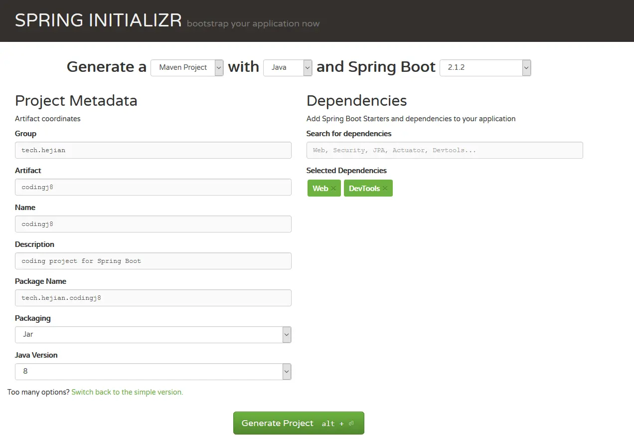 实际上,大家可以直接去 start.spring.io 参考照这份 pom 来创建一个 demo。