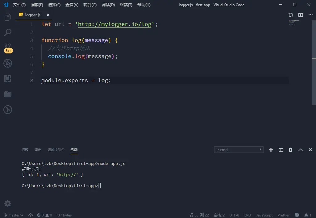 现在创建一个文件logger,写入以下的代码。在这个模块中我们导出了logger函数。