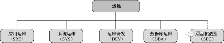 运维的工作方向比较多,随着业务规模的不断发展,越成熟的互联网公司,运维岗位会划分得越细。当前很多大型的互联网公司,在初创时期只有系统运维,随着 模、服务质量的 要求,也逐渐进行了工作细分。一般情况下运维团队的工作分类(见图 1-1 )和职责如下。