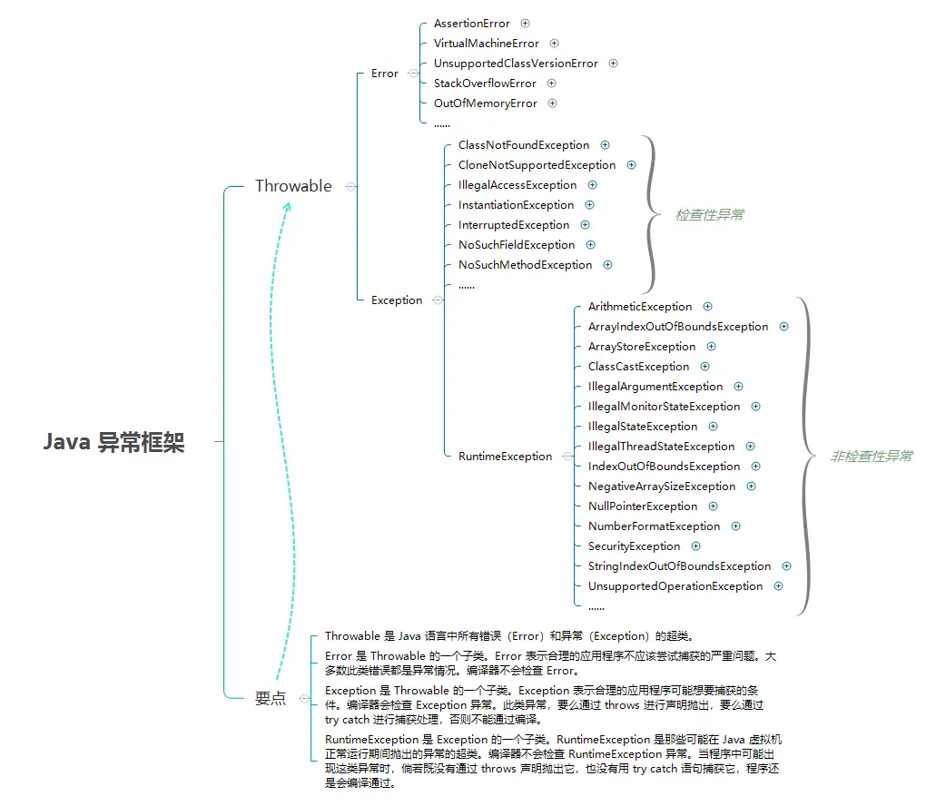 AssertionError- 断言错误。VirtualMachineError- 虚拟机错误。UnsupportedClassVersionError- Java 类版本错误。StackOverflowError- 栈溢出错误。OutOfMemoryError- 内存溢出错误。