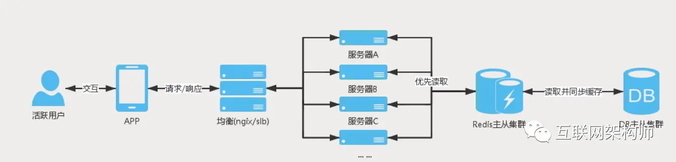 场景中的这些业务基本是用户进入APP后会操作到的,除了活动日(618,双11,等),这些业务的用户量都不会高聚集,同时这些业务相关的表都是大数据表,业务多是查询操作,所以我们需要减少用户直接命中DB的查询;优先查询缓存,如果缓存不存在,再进行DB查询,将查询结果缓存起来。