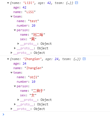 console.log(obj1); // {name: "LiSi", age: 42, team: {name: "test", number: 20}}