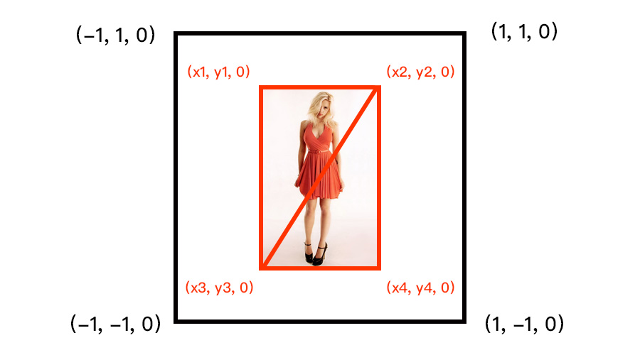 我们来回忆一下,我们要渲染一张图片,需要将图片拆分成两个三角形,如下所示: