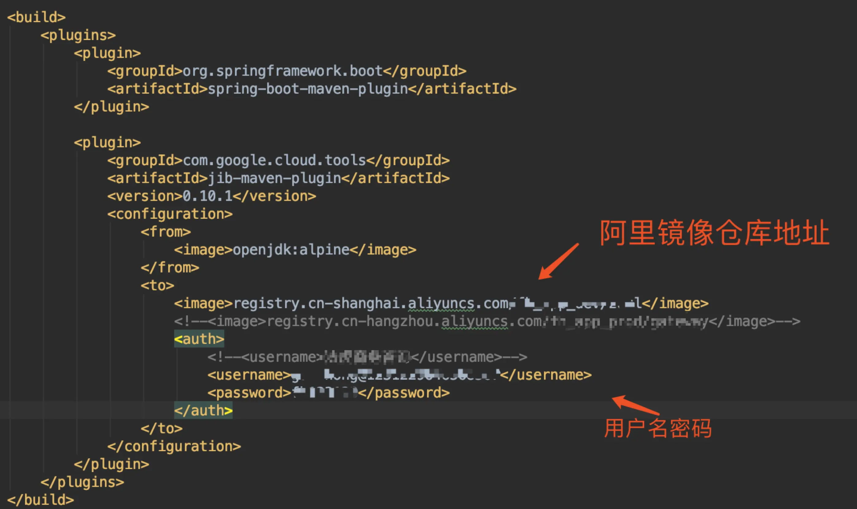 docker镜像服务使用的是阿里云的容器镜像服务。问了一下同事,说是用的google的容器工具jib。于是Cmd+Shift+F全局搜了一下jib。(原谅是公司代码所以是骑兵代码⁄(⁄ ⁄•⁄ω⁄•⁄ ⁄)⁄)