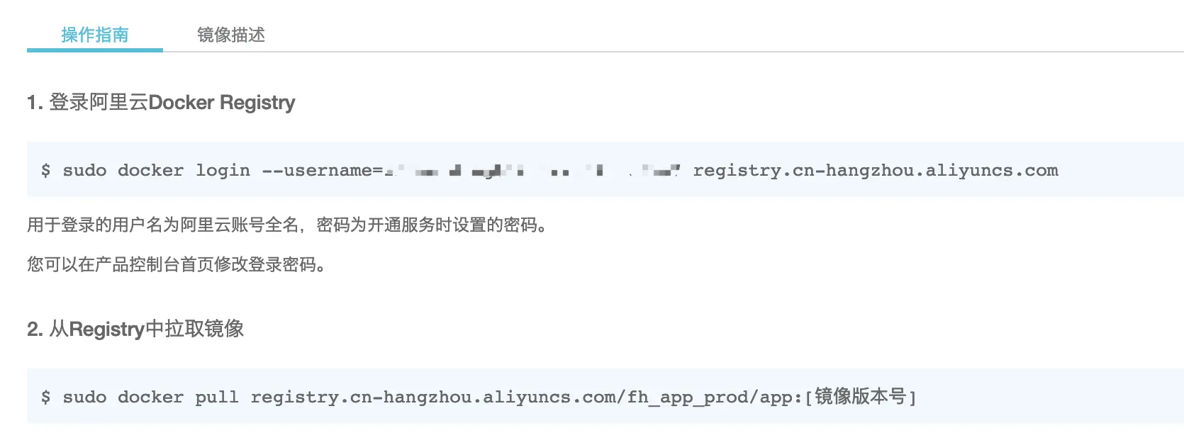 然后开始pull我们上传到阿里云的镜像。其实随便哪个目录都可以pull(此处省略第一次pull阿里镜像服务时,没有看操作指南,一度怀疑自己账号没有权限其实是没有login,然后一直docker login,殊不知后面应该加上阿里云的镜像地址:registry.cn-hangzhou.aliyuncs.com) 在阿里云的镜像服务管理控制台,随便点开一个镜像仓库——>管理,可以看到对镜像仓库的操作指南