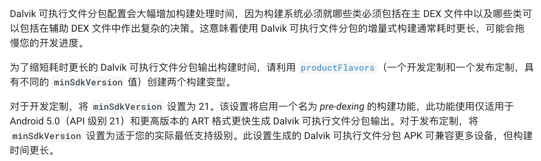 优化开发构建中的 Dalvik 可执行文件分包