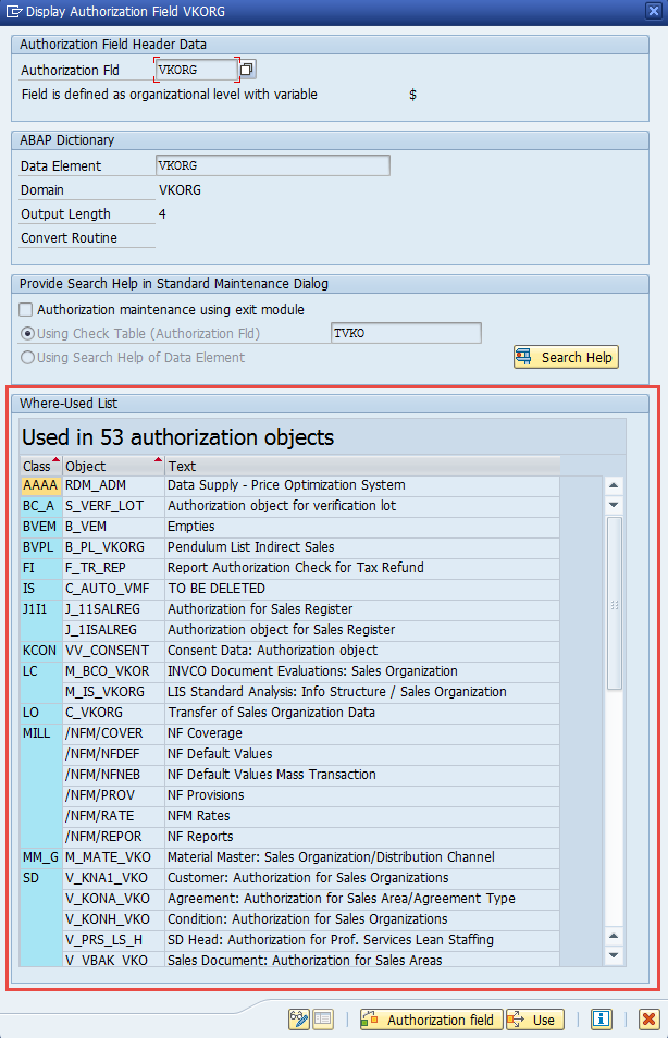 aspect pfcg_auth (V_VBAK_VKO,