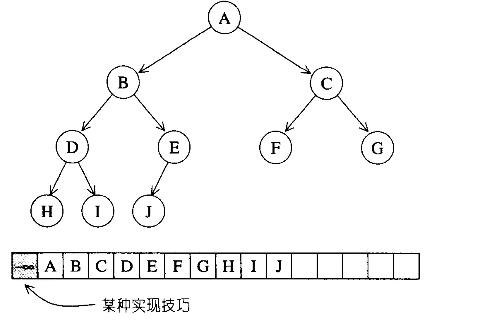 array存储树的节点,array[0]位置保留,则,a[i]的左子节点为a[2i],右子节点为a[2i+1]