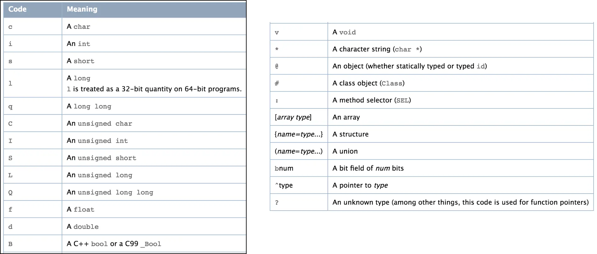 iOS中提供了一个叫做@encode的指令,可以将具体的类型表示成字符串编码