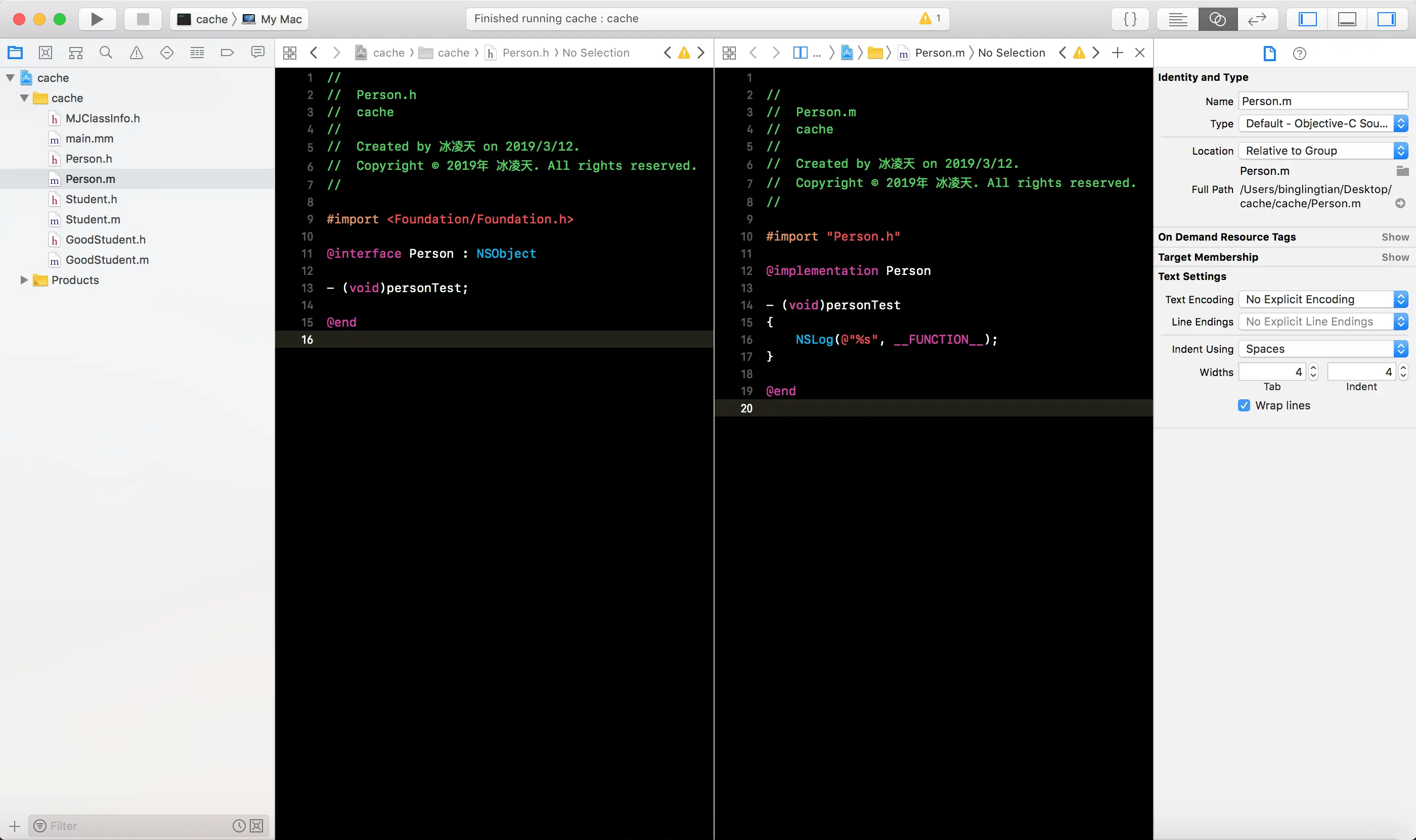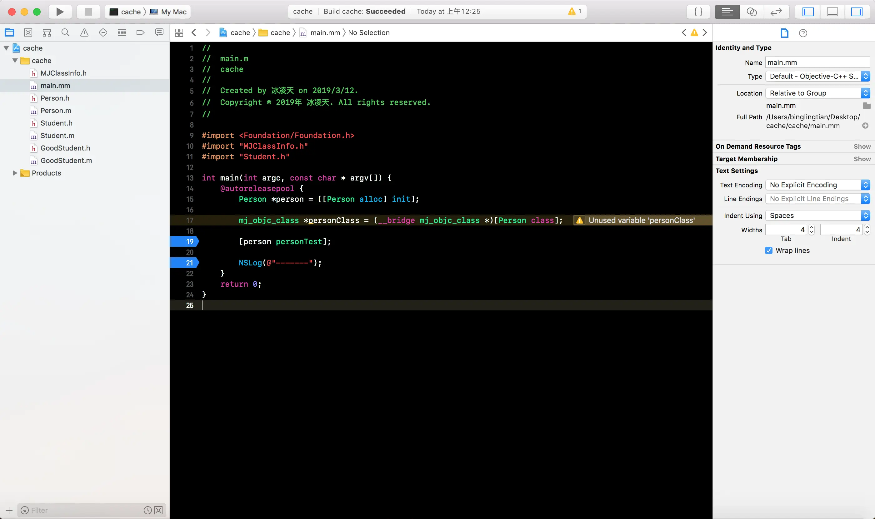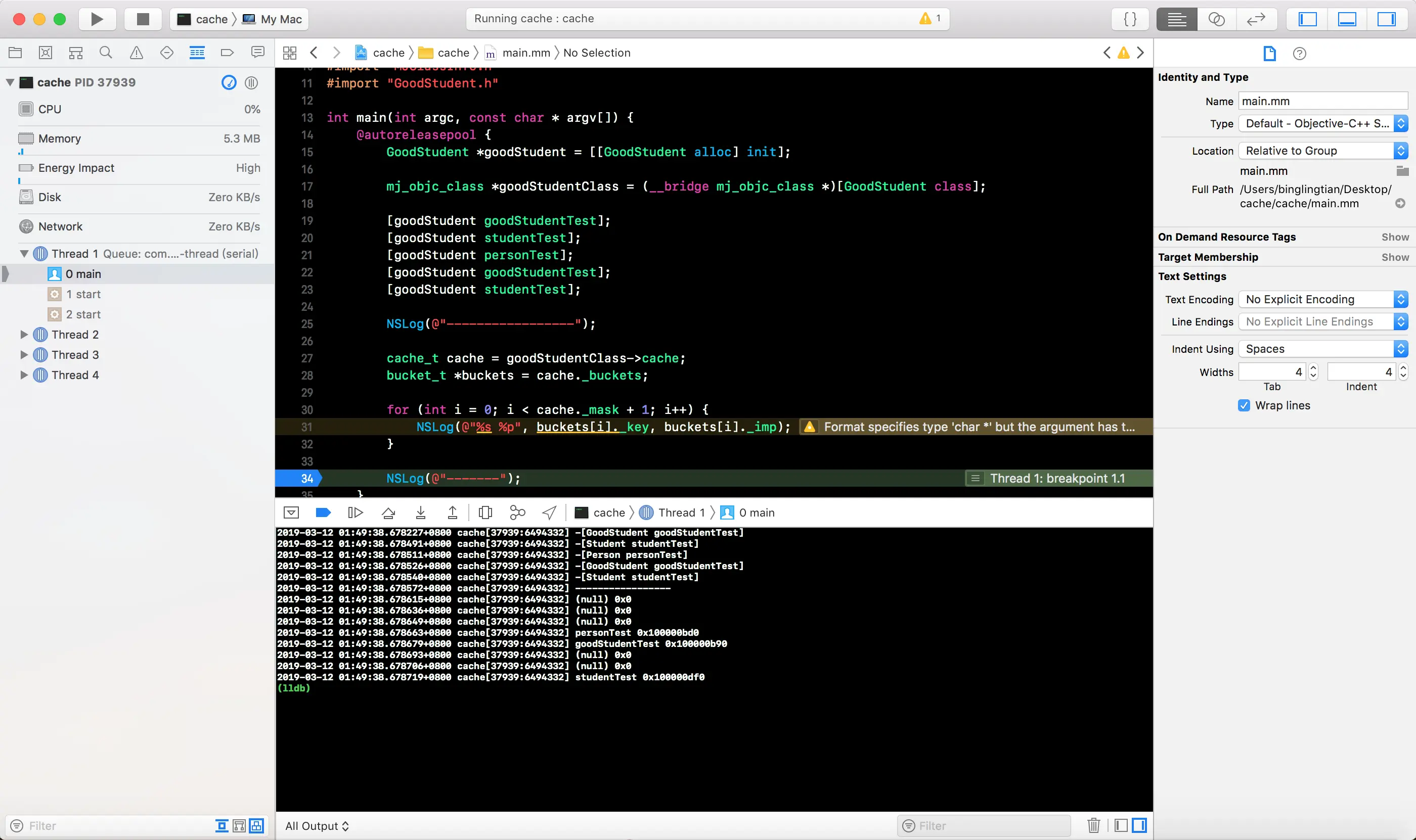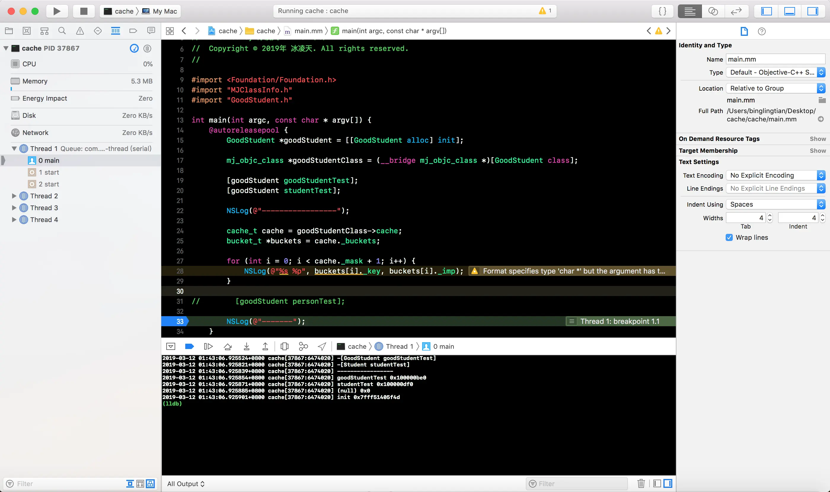 personClass的结构吗可以看到cache中的_buckets长度是_mask + 1 = 4, 此时已经存储一个方法, 即刚调用过的init方法