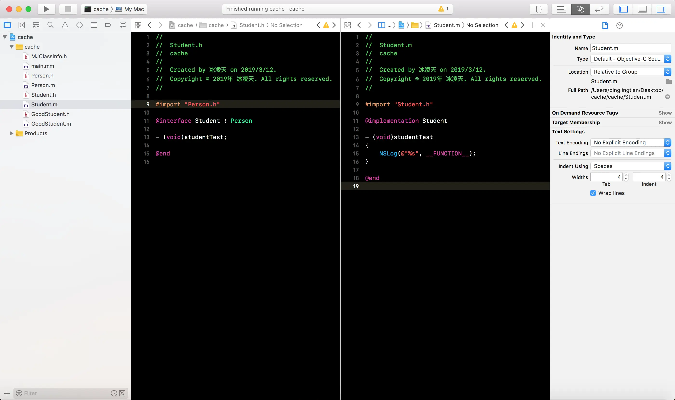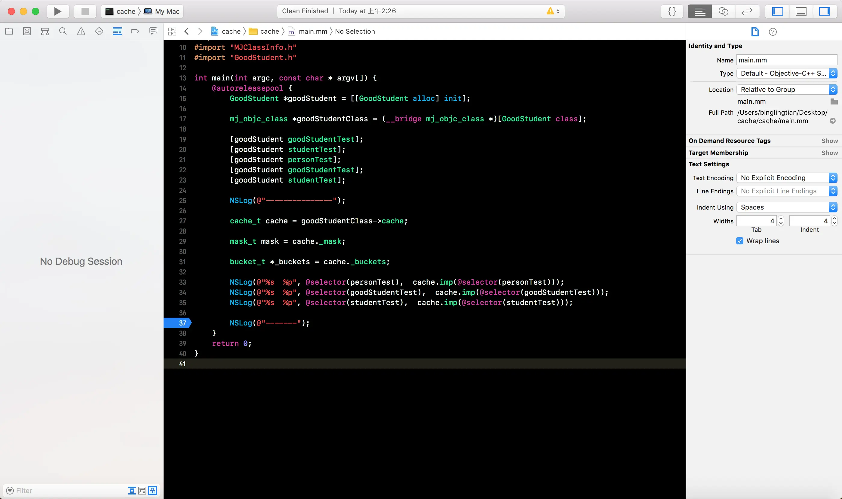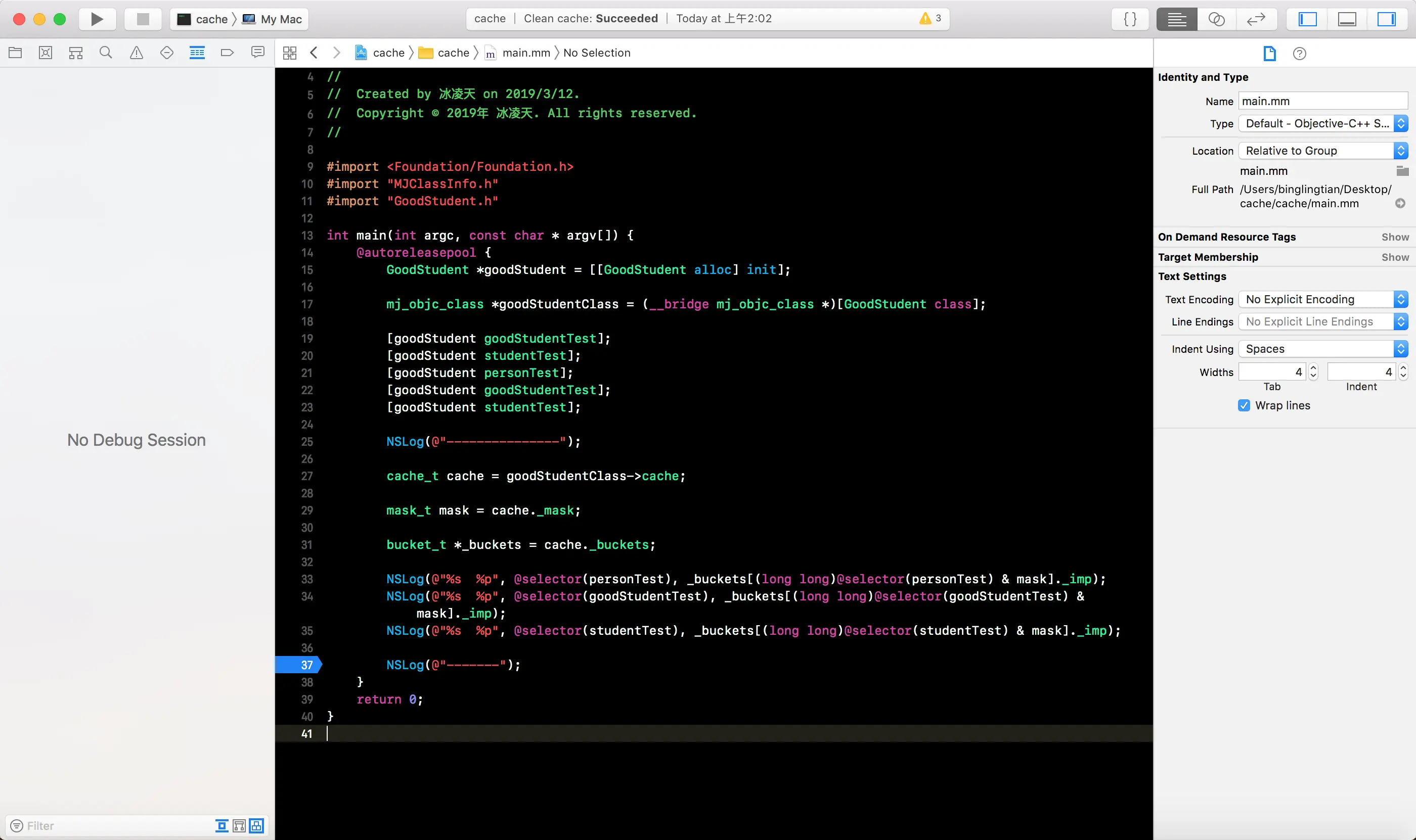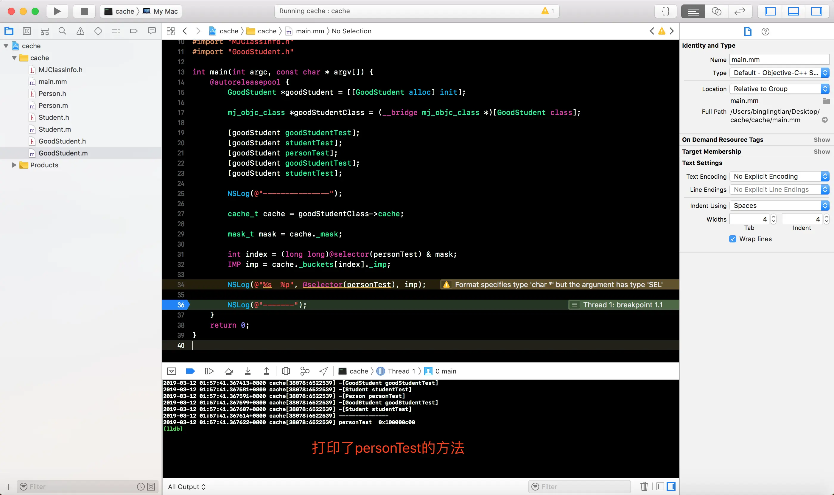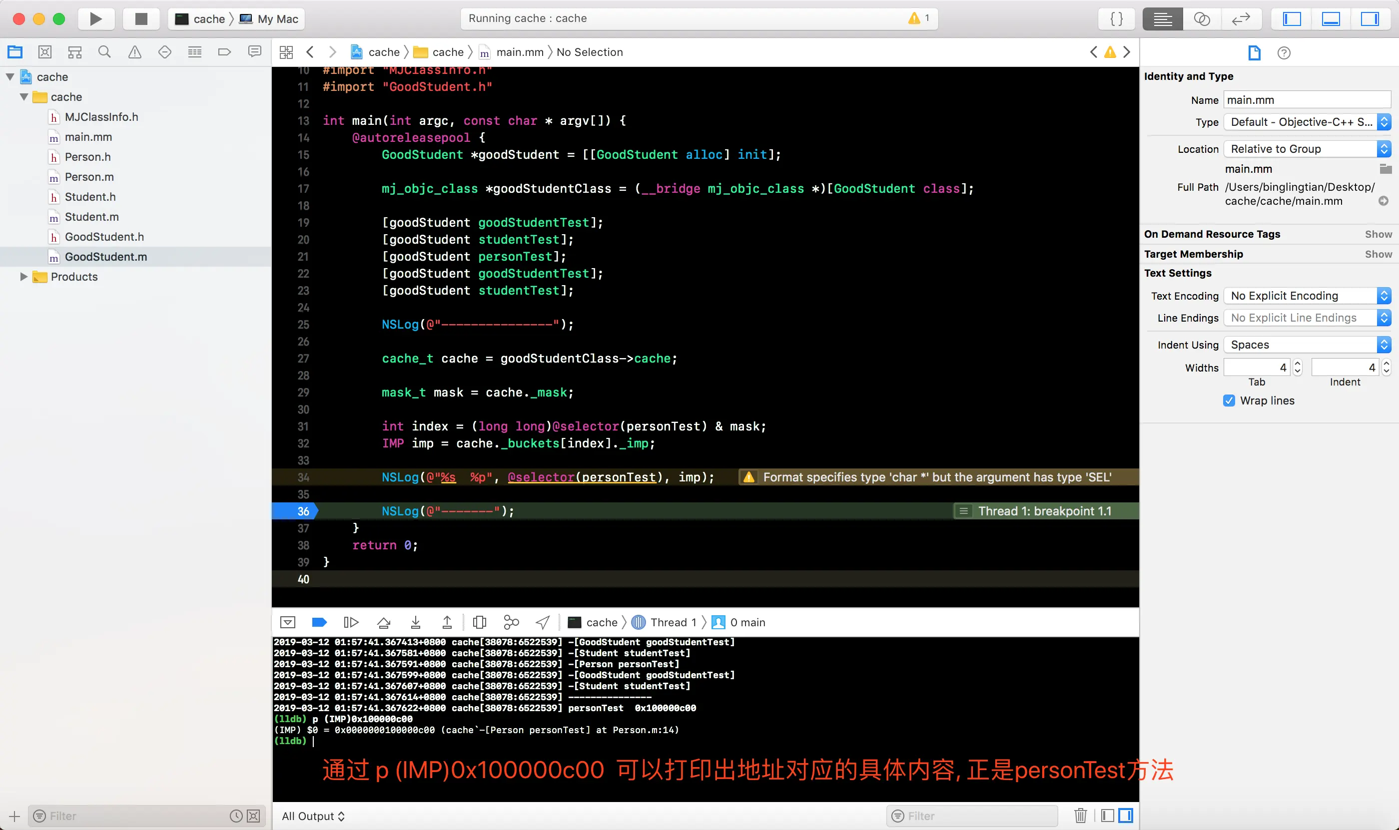 Student实例调用learning方法时, 就会用@selector(learning) & _buckets.mask来获取存储的索引,然后将learning方法存放到Student类对象的cache中 - 假设获取到的索引值为