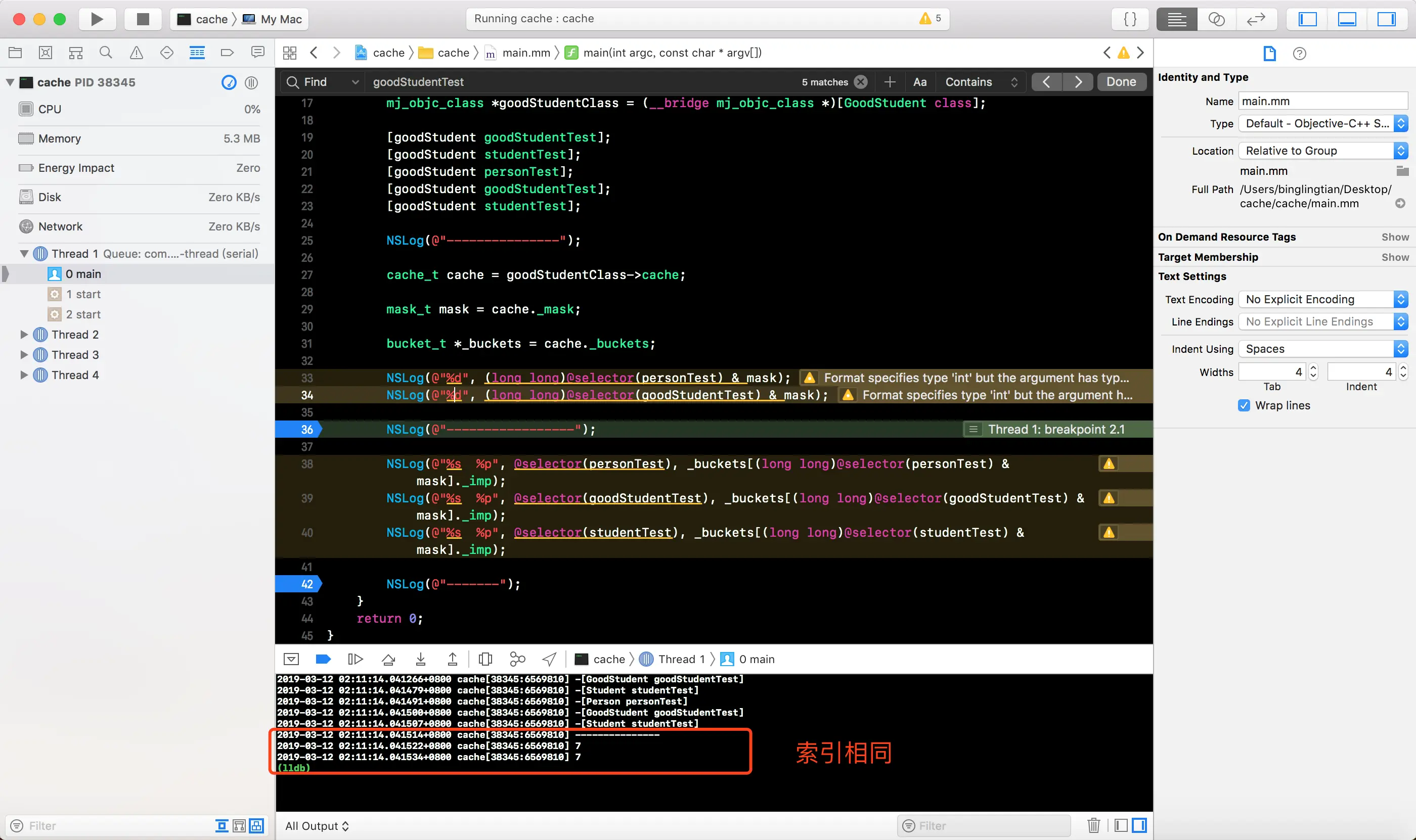 SEL & mask得到的索引值相同 - 通过打印, 也可以看到索引值是相同的