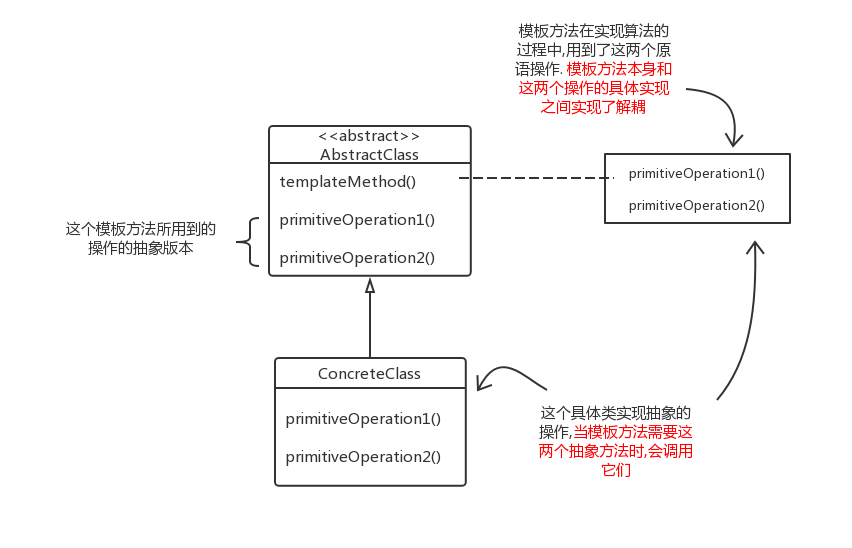 (父类)定义一个算法的骨架, 而将一些步骤延迟到子类中. 模板方法使得子类 可以在不改变算法结构的情况下, 重新定义算法中的某些步骤