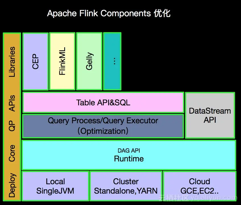Alibaba 对Apache Flink进行了大量的架构优化,如下架构是一直努力的方向,大部分功能还在持续开发中,具体如下: