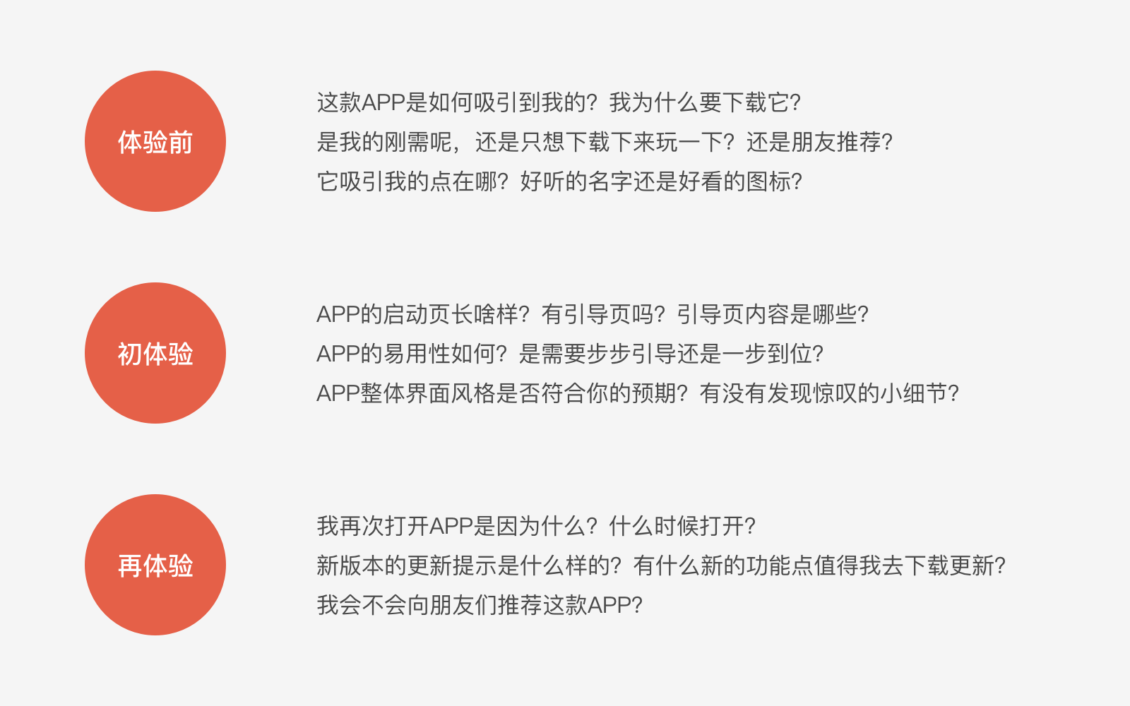 既然要从零开始体验,那么就要去下载一些从没用过的应用。苹果用户可以从App store下载,安卓用户可以从应用商店下载,挑选一些最新的产品,热度高的产品。下载APP只是第一步,关键在于对产品的分析记录。这里的分析记录指的不是我们去研究APP的用户群、核心竞争力、用户场景等,而是先把自己当成一名普通用户去体验产品,培养自己的产品感觉。体验一个新APP的时候要注意以下问题。