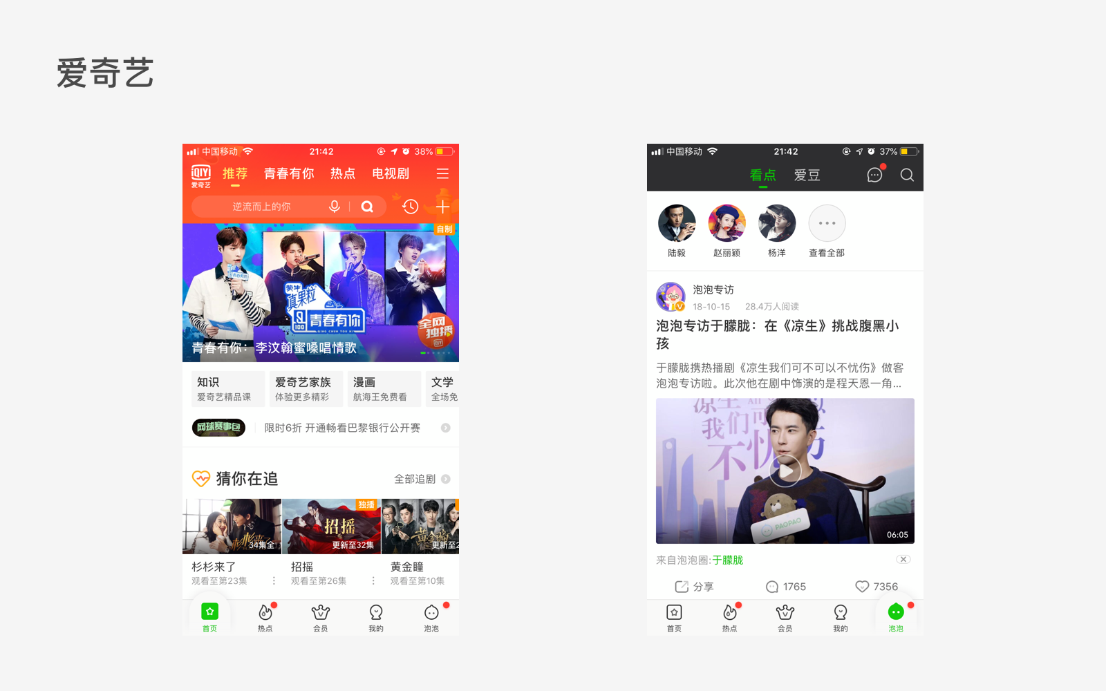 绝大多数的APP有个相同的设计逻辑,就是将“我的”这个个人信息界面的入口放在主页面右下角最靠边的位置上,这么做是为了方便用户操作。但是爱奇艺这个骚操作就厉害了啊,他们为了加强粉丝营销,将“泡泡”社区的入口放在了右下角,这就导致很多人每次打开爱奇艺都忍不住会点错。点错一次还好,主要的是下次打开依然会点错。。。爱奇艺真是有恃无恐啊,我承认爱奇艺的片源多,资源广,但是这个鸠(泡泡)占鹊(我的)巢真的是让人很不爽。不是所有人都喜欢关注某某明星,很多人只是想在爱奇艺看个剧而已。